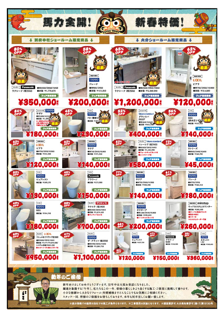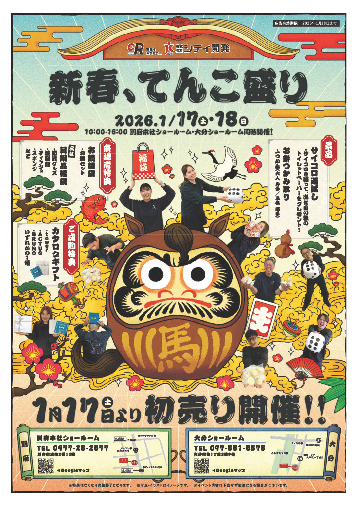 別府・大分ショールームにて『新春!初売りフェア』を開催いたします。